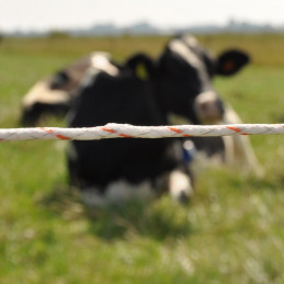 Flätat rep för halvpermanenta stängsel, passar hästar och boskap. 5 rostfria trådar och en mix metalltråd för hög ledningsförmåga. UV-stabiliserad. Stolpavstånd upp till 8m.Specifikationer- Bredd / Diameter mm: 5+- Antal rostfria trådar: 5- Antal förtenta koppartrådar: 1- Motstånd ohm / meter: 0,18-