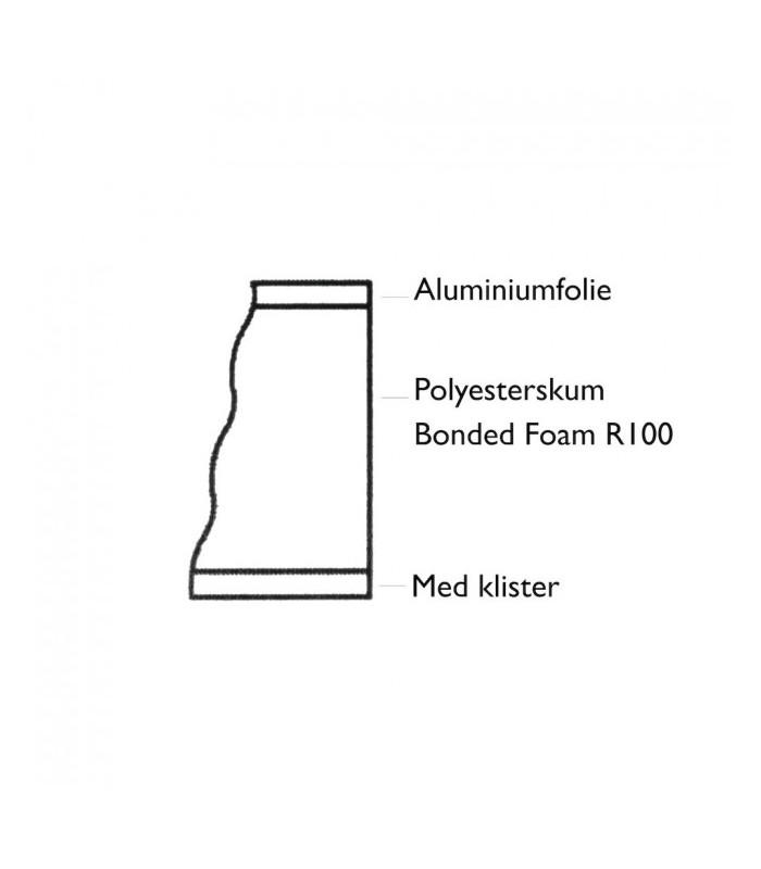 Ljuddämpningsmaterial med självhäftande polyetherskumplast och aluminiumfolie som ytskikt. Används som beklädnad och dämpning i motorrum, maskinskydd, ljudrum, golvunderlag, stödinlägg i emballage och liknande. Finns i 3 tjocklekar. Temperaturområde -30° till +90°C, kortfristigt till +115°C. Brandegenskaper: Enligt US-norm FMVSS-302.