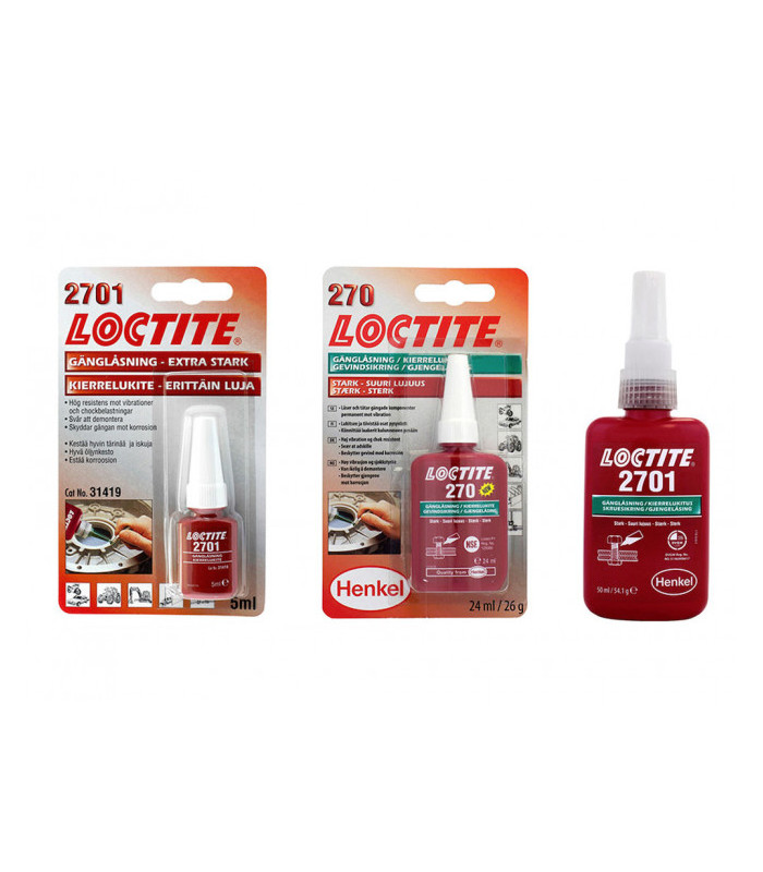För gängförband i metall (inklusive passiva material som rostfritt stål och passiva beläggningar som zinkjärn), där demontering för underhållsarbeten inte är nödvändigt. Rekommenderas även för permanent låsning av skruvar och muttrar i tex motorblock.