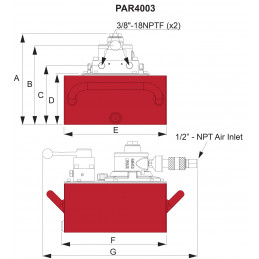 LUFTDRIVEN HYDRAULPUMP 2-STEGS, ENKELVERKANDE Interna avlastningsventiler för överbelastningsskydd Max arbetstryck 700 bar Levereras utan hydraulolja. 3,8 liters tank.