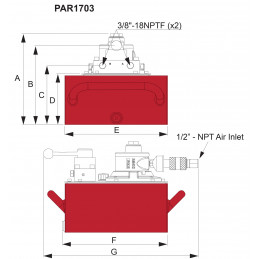 LUFTDRIVEN HYDRAULPUMP 2-STEGS, DUBBELVERKANDE Interna avlastningsventiler för överbelastningsskydd Max arbetstryck 700 bar Levereras utan hydraulolja. 11,4 liters tank.