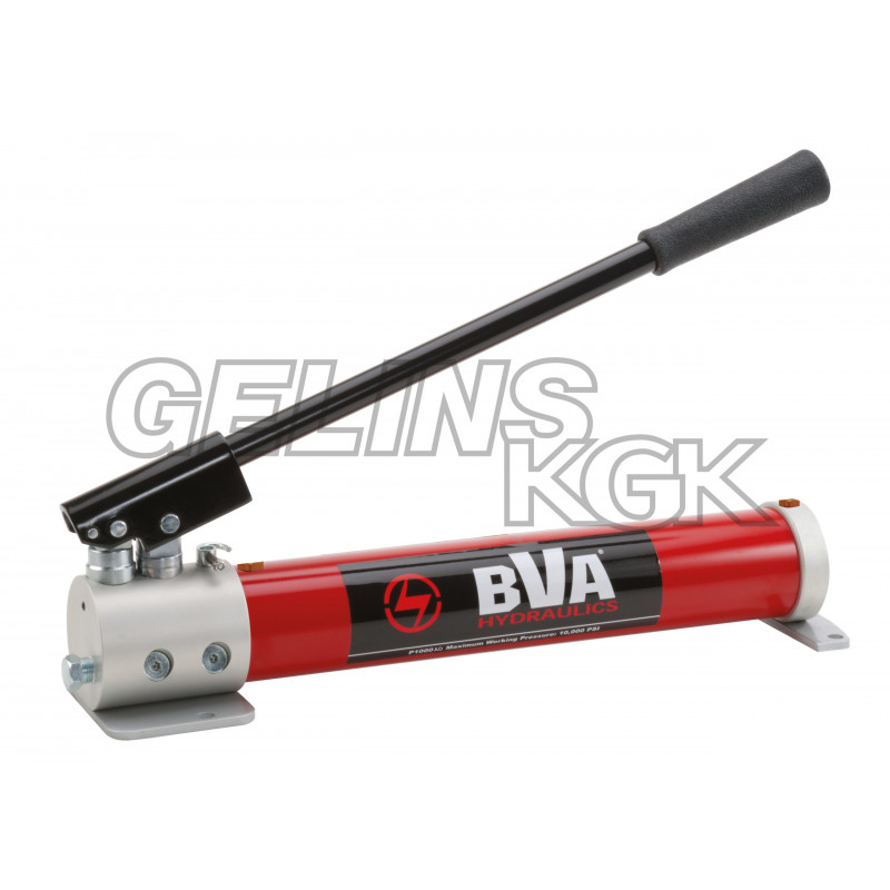 BVA Hydraulics 2-stegs Handpump med 1,0 liters tank. Passar för enkelverkande cylindrar eller verktyg med en max. oljevolym på 1000 cm3. Tank i aluminium för låg vikt. 2-stegs pump som underlättar för operatören att pumpa. Arbetstryck 700 bar.