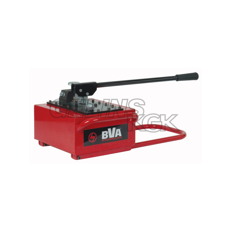 BVA Hydraulics 2-stegs Handpump med 7,8 liters tank. Passar för enkelverkande cylindrar eller verktyg med en max. oljevolym på 7800 cm3. Tank i stål med bärhandtag för enkel förflyttning. 2-stegs pump som underlättar för operatören att pumpa. Arbetstryck 700 bar.