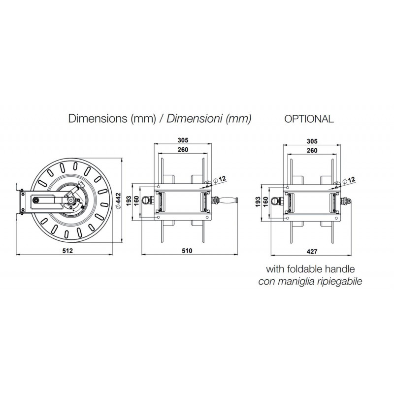 Beskrivning Manuell Slangvinda utan slang (1/4”-5/16”-3/8”) Kapacitet: 400 bar