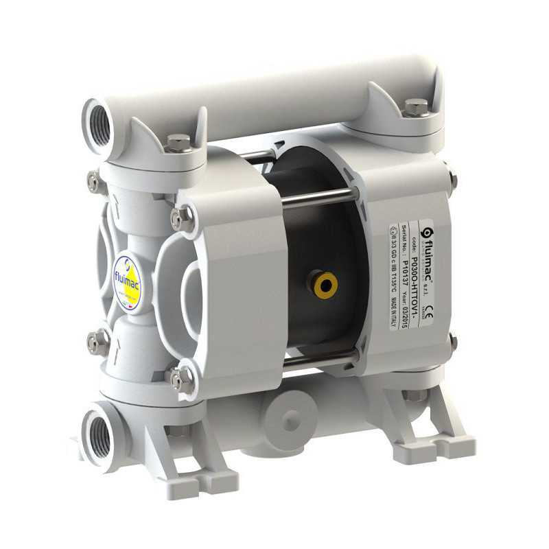Beskrivning Luftdriven Membranpump Från Italienska Fluimac. För Vatten, kylarvätska, spolarvätska och Urea Membran: Hytrel + PTFE Hölje: Polypropylen