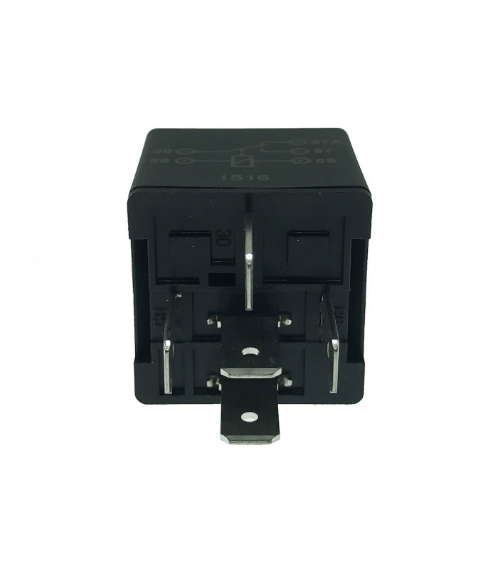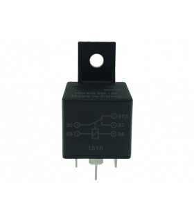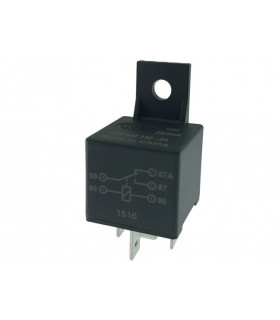 Växlande minirelä 5-stift med flatstiftsanslutningar 6,3 mm och fäste. Belastbarhet (vid 80°C) 30/20 A vid 12 V. H-nr: 4RD 933 332-041.
