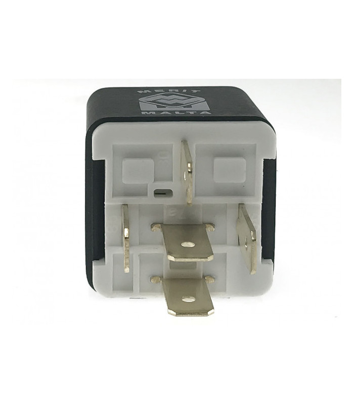 Växlande minirelä 5-stift med diod och fäste. Fabrikat: Merit Malta.