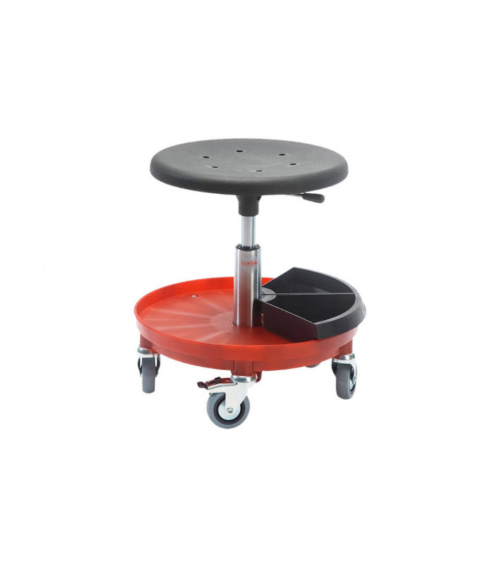 Mycket användbar där man har låga arbetshöjder och vill skona rygg, knän och vrister. Sitthöjd: 360 - 475 mm. Mjukt fjädrande sits och fem svängbara hjul varav två är låsbara. Verktygshylla under sitsen medföljer.