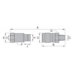 Nippel/hona med snabbkoppling för arbetstryck 700 bar.