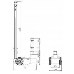 Lufthydraulisk domkraft. Höjs och sänks med fjärrkontroll. Spiralslangens längd 2,8m • 2-stegs • Bärhandtag • Inbyggd säkerhetsventil • Låg vikt • Förlängningar 45 & 75 mm