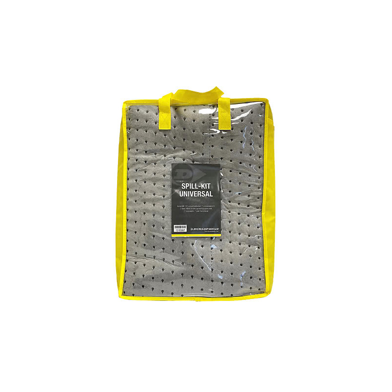 Saneringskit för absorption av olja, petroleumbaserade vätskor, skärvätskor, lösningsmedel, icke aggressiva kemikalier och vatten.