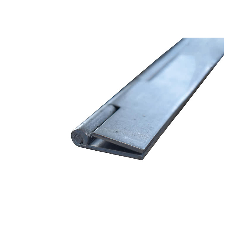 Pianogångjärn utan skruvhål med låssprint. Finns i aluminium, obehandlat stål, rostfritt eller galvaniserat.