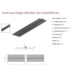 Pianogångjärn 50 mm rfs 50x1,5x3,0x2000 mm. Levereras oborrat för egen håltagning.