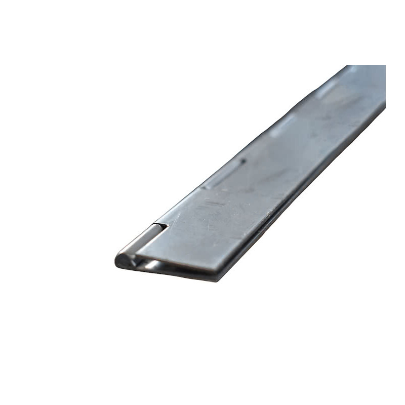 Pianogångjärn utan skruvhål med låssprint. Finns i aluminium, obehandlat stål, rostfritt eller galvaniserat.