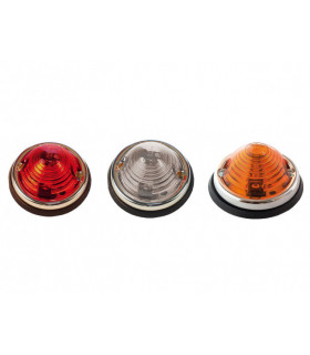Sidomarkeringslampa med plastglas och reflex. Snabbinfästning. Lamphållare för spolformlampa. Glödlampa: 1st SV8,5 5W