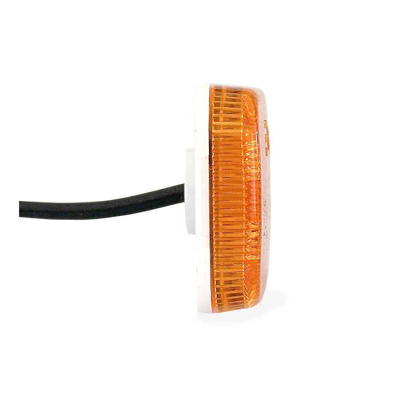 LED sidomarkeringslampa och positionsljus med reflex och lysdiod. 10-30 V. Orange, röd eller vit, finns med 5 m kabellängd. Vit sidomarkeringslampa finns med 0,5 m kabel. OBS! Vid montering på vinkelhållare ska gummitätning inte användas. Vid annan montering ska gummitätning alltid användas. Vink