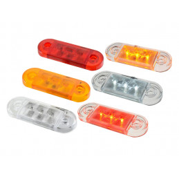LED sidomarkeringslampa och positionsljus med reflex och lysdiod. 10-30 V. Orange, röd eller vit, finns med 5 m kabellängd. Vit sidomarkeringslampa finns med 0,5 m kabel. OBS! Vid montering på vinkelhållare ska gummitätning inte användas. Vid annan montering ska gummitätning alltid användas. Vink