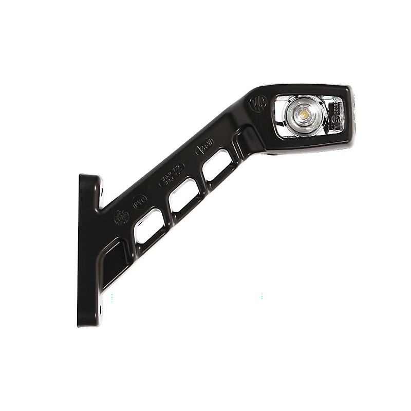 Vit sidomarkerings- och positionslampa med fäste för olika installationer och montering för t.ex släpvagnar och påhängsvagnar, lastbilar, skogsbruk, gaffeltruckar, gruvdrift m.m. 2 m kabel utan kontakt. Fäste för montering ingår. Lamporna är ADR-godkända. Denna sidomarkeringslampa är ett po
