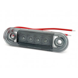 Sidomarkeringslampa vit LED 24 V med integrerad Superseal kontakt. • Spänning: 24 V • Lamptyp: LED• Färg: Vitt ljus• Kontakt: Superseal 2 stift • Montering: Horisontell+Vertikal • CC: 110 mm