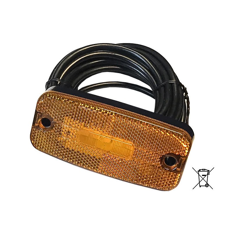 LED sidomarkeringslampa och positionsljus med reflex och lysdiod. 10-30 V. Orange, röd eller vit, finns med 5 m kabellängd. Vit sidomarkeringslampa finns med 0,5 m kabel. OBS! Vid montering på vinkelhållare ska gummitätning inte användas. Vid annan montering ska gummitätning alltid användas. Vinkelhållare och/eller gummitätning köps separat.