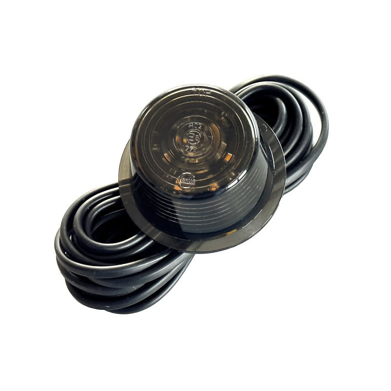 Positionslampa med 3 funktioner, 12-36 V, gul med blinkers, vinkelhållare och 5 m kablage. • 3-funktions LED-positions/blinkerslampa• Låg strömförbrukning• Europeisk E9 homologering• Stöttålig • PC-lins • Tre strömkablar: Jord, vit - Positionsljus, svart - Blinkersfunkti