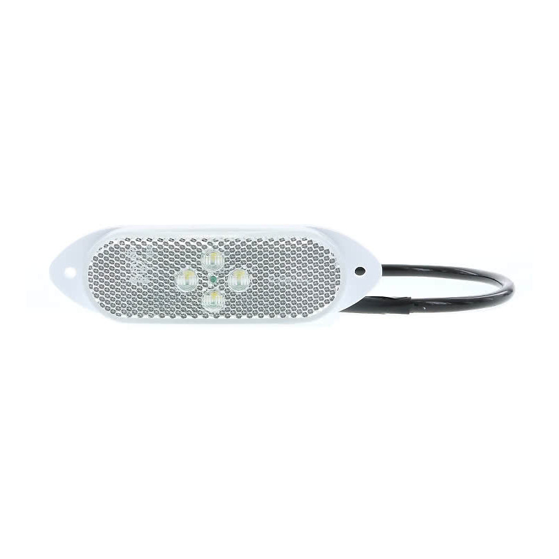 Positionslampa LED med blinkers och en låg strömförbrukning. Europeisk homologation E9. Endast horisontell montering. Elektromagnetisk kompatibilitet (EMC); R10-homologering. • Lampan levereras med fäste och kabelanslutning. • ADR-godkänd. Tre strömkablar:• Vit - Jord• Sv