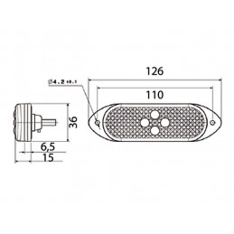 Positionslampa LED med blinkers och en låg strömförbrukning. Europeisk homologation E9. Endast horisontell montering. Elektromagnetisk kompatibilitet (EMC); R10-homologering. • Lampan levereras med vinkelfäste och kabelanslutning. Tre strömkablar:• Vit - Jord• Svart - Positio