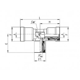 Vridbar vinkelkoppling M12x1,5. Vikten är 39,5 g med ett SW-värde på 11 samt ett SW1 värde på 19.