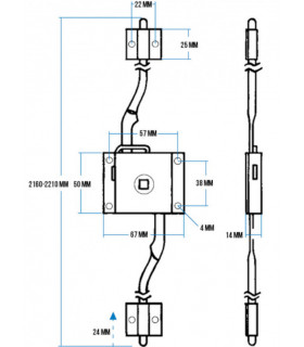 Komplett regel med mittlås 50 x 63 mm. Finns extra överfall att tillgå. För 8 mm fyrkanstapp.