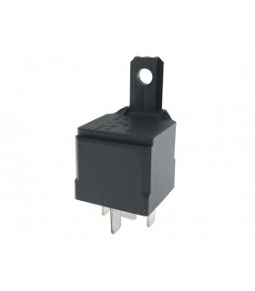 Växlande minirelä 5-stift med motstånd och fäste. Induktiva störspänningsstoppar i spolen begränsande med parallellmotstånd till < 90 V. Med flatstiftsanslutningar 6,3 mm. Belastbarhet (vid +80°C) 40/20 A vid 24 V. H-nr: 4RD 007 903-011.
