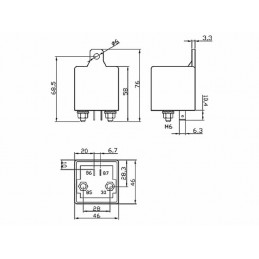 Växlande minirelä 5-stift med motstånd och fäste. Induktiva störspänningsstoppar i spolen begränsande med parallellmotstånd till < 90 V. Med flatstiftsanslutningar 6,3 mm. Belastbarhet (vid +80°C) 40/20 A vid 24 V. H-nr: 4RD 007 903-011. Fabrikat: Hella