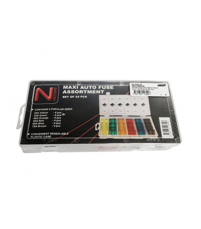 Säkringssortiment för ATO Plug-in säkringar. Innehåller: 100 st ATO Plug-in säkringar mellan 1 och 30 A samt 1 st säkringsverktyg.