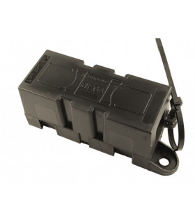 - Säkringshållare för bultsäkringar maximalt 3 st säkringar, Typ SF51 enl. ISO 8820-5 (MEGA) - 2 st strömkablar kan monteras - IP54 klass med integrerat dränage - Bultmaterial: rostfritt stål - Ledarskena: Cu, förtennad - Bultar: M8 x 16 - Fyra monteringshål i bottenlådan - Avb
