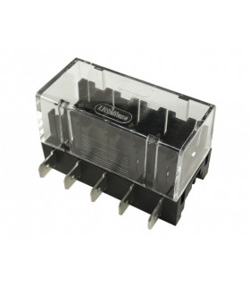 4-polig flatsäkringsdosa mini, byggbar i sidled samt med relähållare. Exklusive lock, säkringar samt kabelskor.