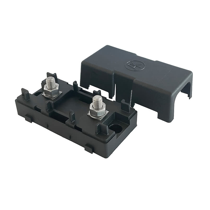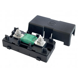- Säkringshållare för bultsäkringar 2-fack, Typ SF51 enl. ISO 8820-5 (MEGA) - Bultmaterial: rostfritt stål - Bultar: M8 x 16 - Två monteringshål med 85 mm CC - Muttrar och brickor är färdigmonterade - Max åtdragningsmoment: 20 Nm - Material i svart hårdplast - Över- och underdel
