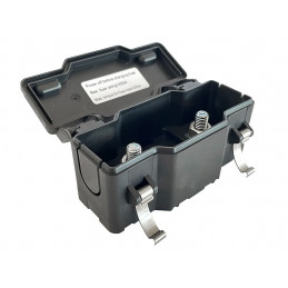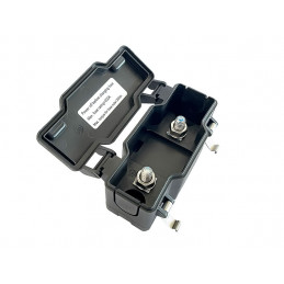 - Säkringshållare för bultsäkringar maximalt 3 st säkringar, Typ SF51 enl. ISO 8820-5 (MEGA) - 2 st strömkablar kan monteras - IP54 klass med integrerat dränage - Bultmaterial: rostfritt stål - Ledarskena: Cu, förtennad - Bultar: M8 x 16 - Fyra monteringshål i bottenlådan - Avb
