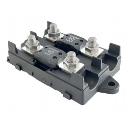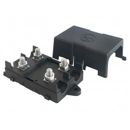 Säkringshållare MIDI 2-fack ihopkopplingsbar med högt lock. Material i svart hårdplast. Bultar i storlek M5 x 14 som är förmonterade. Över- och underdel kan fästas ihop. Åtdragningsmoment: max 4,5 Nm.