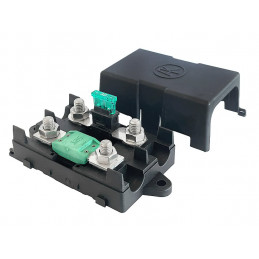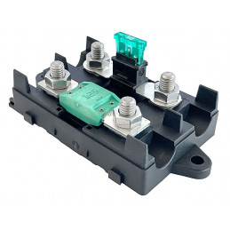 4-polig flatsäkringsdosa mini, byggbar i sidled samt med relähållare. Exklusive lock, säkringar samt kabelskor.
