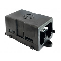 För MIDI®-säkringar upp till 200 A. Längd 52 mm, bredd 28 mm. Exkl. säkring. 2 st M5 bultar håller säkringen på plats. Kan byggas ihop till plint. 2 st fästhål finns under locket. Förpackningsstorlek: 10 st.