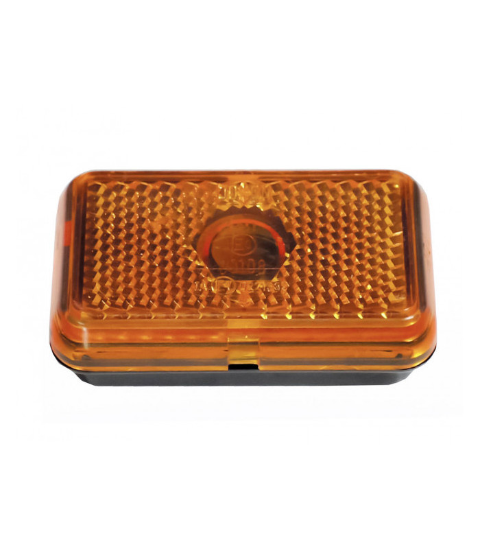 Sidomarkeringslampa med orange plastglas och reflex och avtagbart gummifäste.
