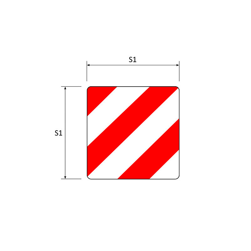 Sidomarkeringsskyltar enligt de nya föreskrifterna från Transportstyrelsen, kvadratiska röd fluorescerande, vit reflekterande. Passar både höger och vänster. Monteras fram och bak. Tjocklek: 1 mm. Material: plåt. Framtidssäkra dina skyltar enl. TSFS nya standard!