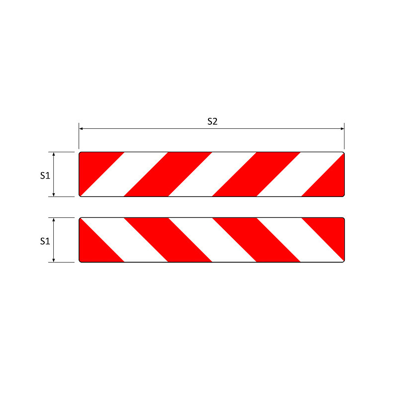 Sidomarkeringsskyltar enligt de nya föreskrifterna från Transportstyrelsen, rektangulära röd fluorescerande, vit reflekterande. Finns i sats om höger och vänster. Monteras fram och bak. Tjocklek: 1 mm. Material: plåt. Framtidssäkra dina skyltar enl. TSFS nya standard!
