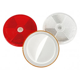 Själhäftande reflex utan centrumhål. Finns i vitt, rött och orange.