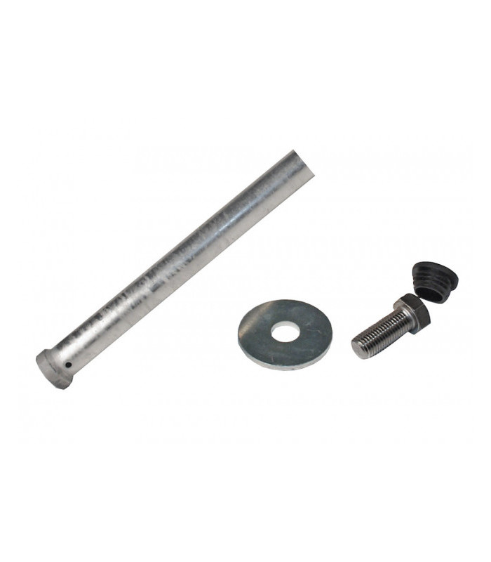 Skärmstag, galvaniserat, rakt. Längd 765 mm, rördiameter 48,5 mm. Invändig gänga M16. Levereras komplett med plastplugg, bricka och bult.