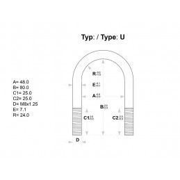Förzinkad U-bygel 48 mm, längd 80 mm, fzb. Exklusive plåt och rostfri M8 mutter.