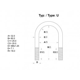 Förzinkad U-bygel 32 mm, längd 80 mm, fzb. Exklusive plåt och rostfri M8 mutter.