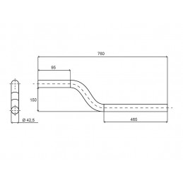 Skärmstag för klämfäste med rördiameter 42,4 mm, längd 605 mm.
