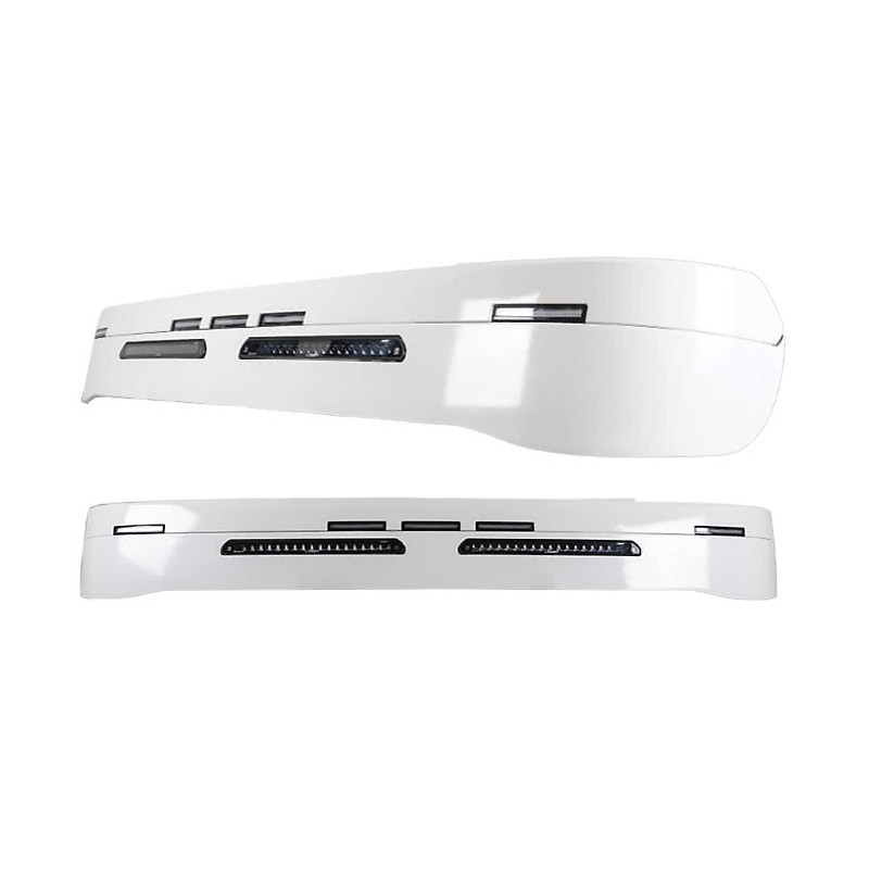 Solskydd för Scania NextGen förberett för originallampor i glasfiberarmerad plast från Truckstyle Sweden. Solskyddet har perfekt passform och passar alla NG-hytter (L-, P-, G-, R-, S- eller XT-serien). Alla infästningar är samma som för originalsolskyddet. Det gäller även originalöverdelens infäs