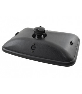 Spegelhuvud med bakstycke i kraftig svart plast. R=1800. 314x228x65 mm. Ratt med klammer för rördiameter 14-22 mm. Kabelsats ingår ej.