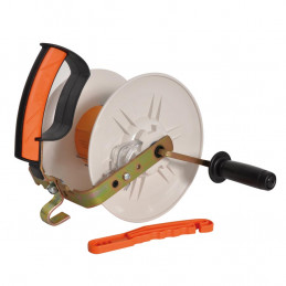 Billig och praktisk plastspole med spärr. Passar upp till 200 meter Vidoflextråd.